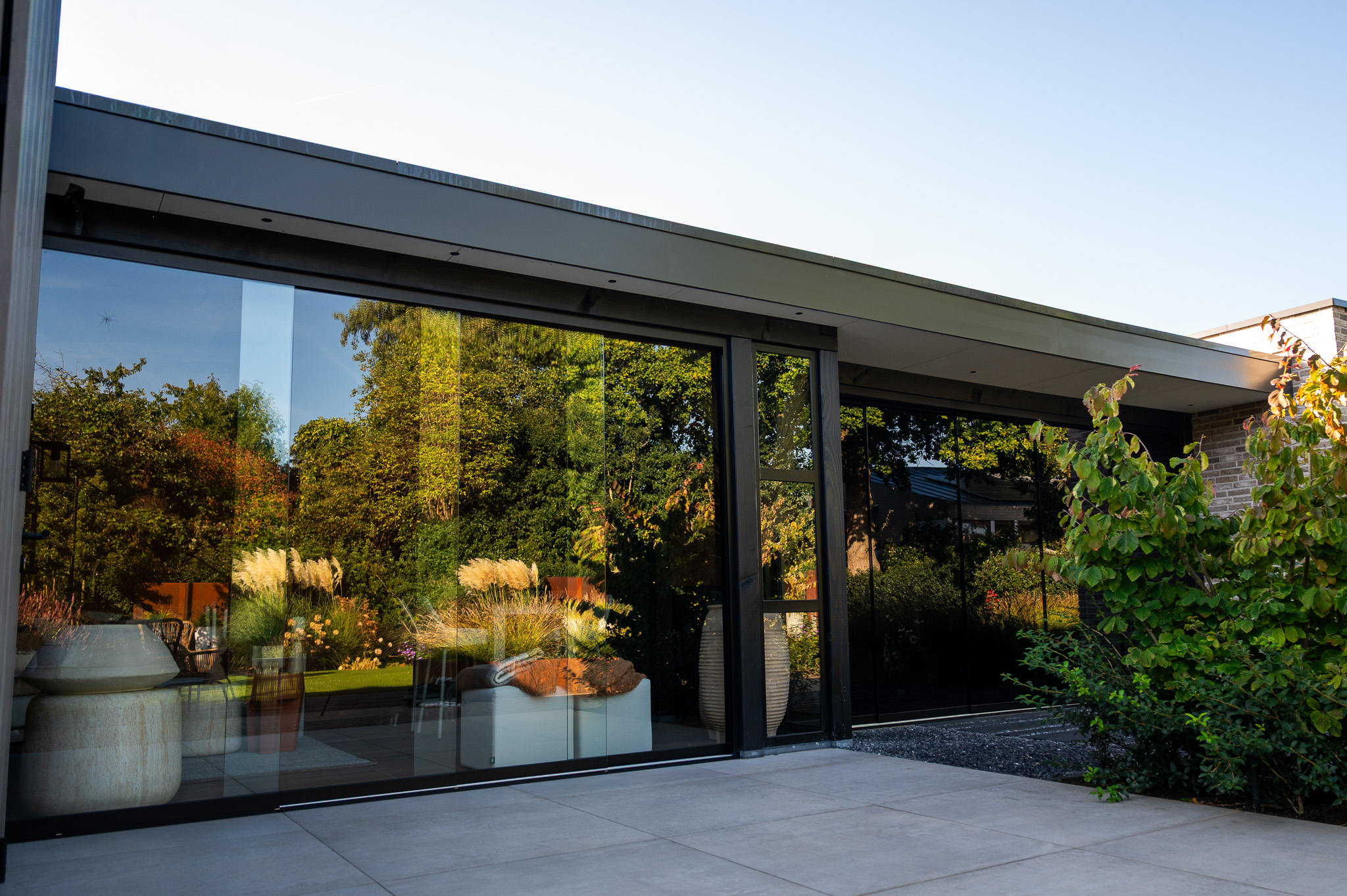 Binnen de royale stijl draait alles om ruimte, comfort en een rijke uitstraling. Door het gebruik van hoogwaardige materialen en doordachte details ontstaat een indrukwekkend geheel dat direct opvalt en elke tuin een exclusief karakter geeft.